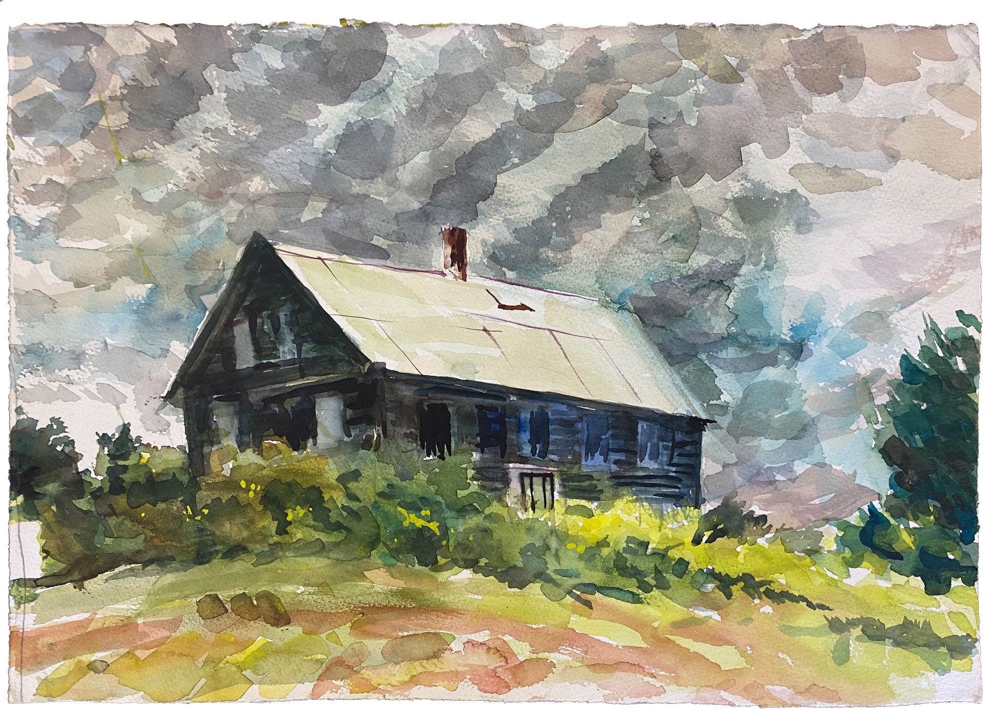 You can feel the Maine-mood of the sky behind this old wooden house.