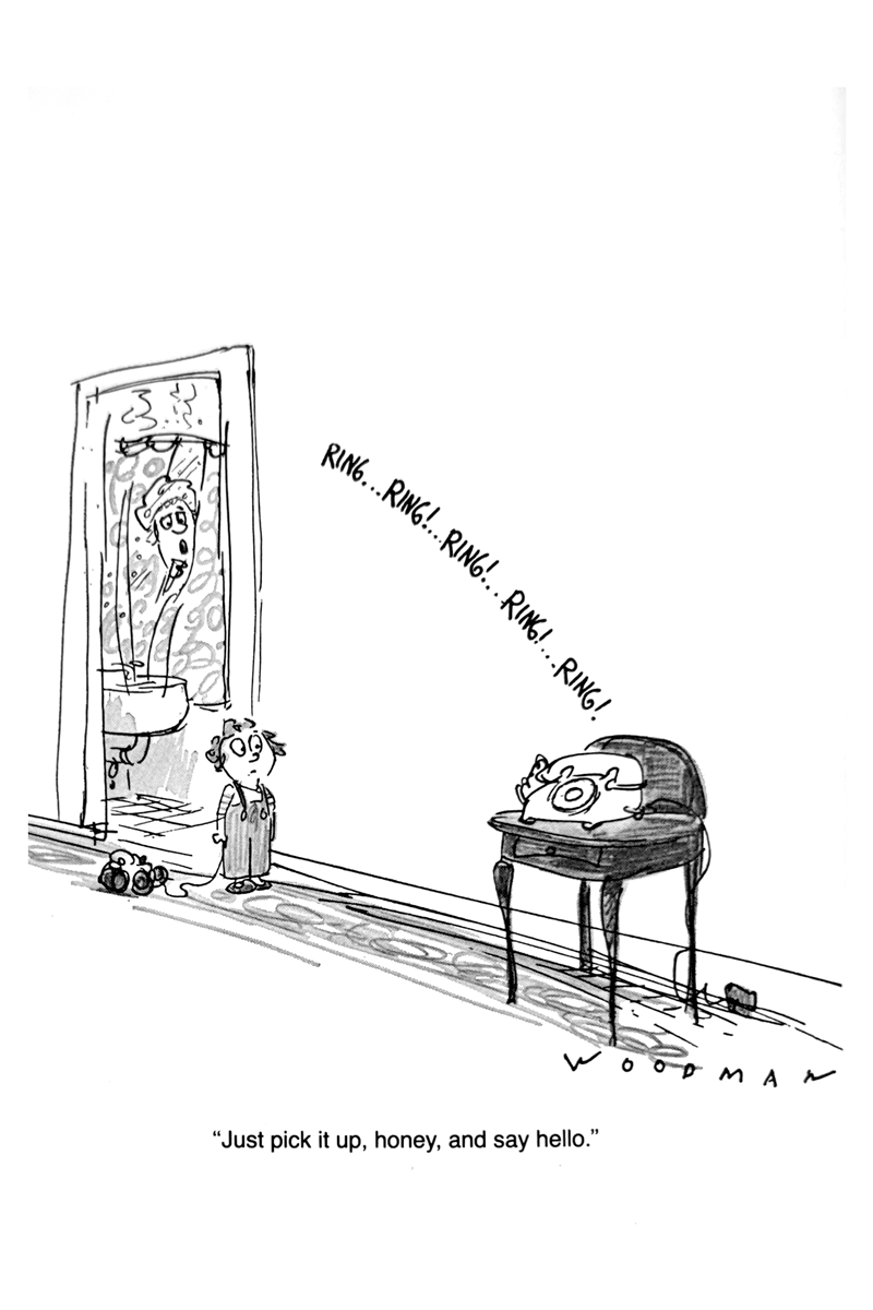 Original black & white cartoon published in Fish & Mosse News. Autobiographical cartoon.